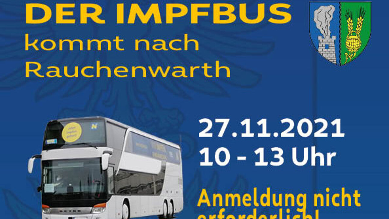 Der Impfbuss kommt nach Rauchenwarth, am 27.12.2021 von 10.00 bis 13.00 Uhr Sportvereinsparkplatz neben der Feuerwehr .